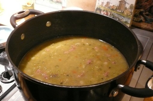 I first had my first split pea soup in Amsterdam, in a cavern. It was served with a ham hock, and is the best split pea soup ever. The ones from Andersen Pea Soup restaurants along Freeway 5 taste like from the cans!