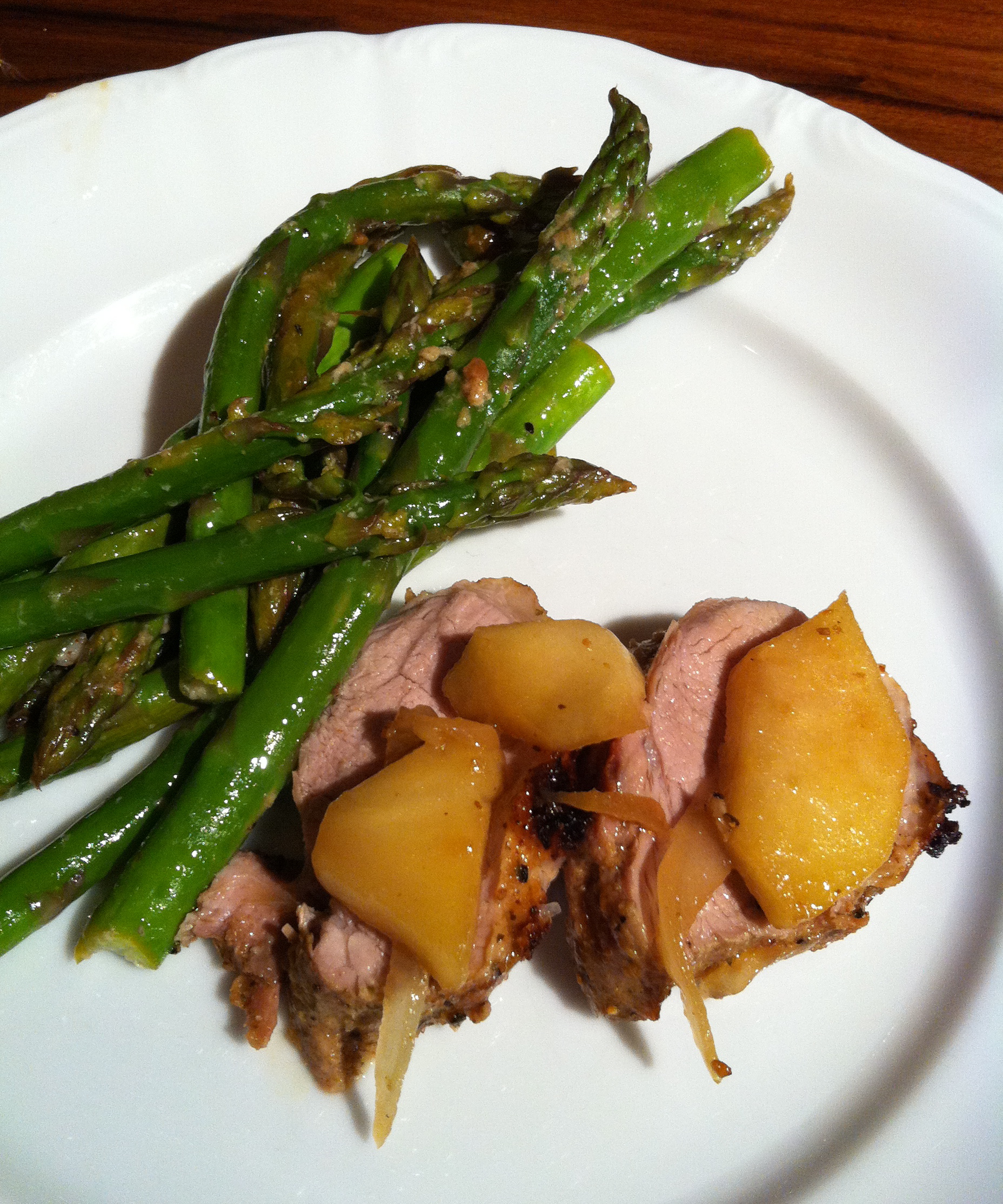 While waiting for the meat to still cook, make asparagus. I should ask Tina to write this part, since it’s her dish.