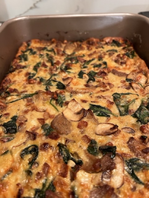 Another idea: bake this in muffin cups. For this, I would use the shredded potato in the Frozen Section at the grocery store. Spray some PAM or olive oil, line with shredded potato (already defrosted and pliant), bake it for 10 min, then add fillings. Bake again at 350°F for 20 min.