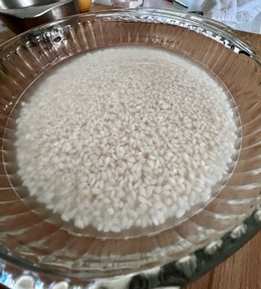 I could never claim my dishes to be authentic, because I always find ways to simplify a recipe. Easier for me back then when I was raising a family and working. Easier for me now when I prefer working in the garden or traveling or reading. Traditional Sticky Rice preparation involves soaking the rice overnight, rinsing, and then steaming over a bamboo steamer placed over boiling water—a process my mom followed. Note that Sticky Rice is different from short-grain rice: Sticky Rice is opaque, while short-grain is translucent.