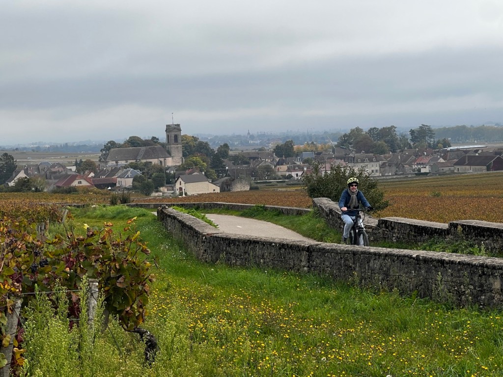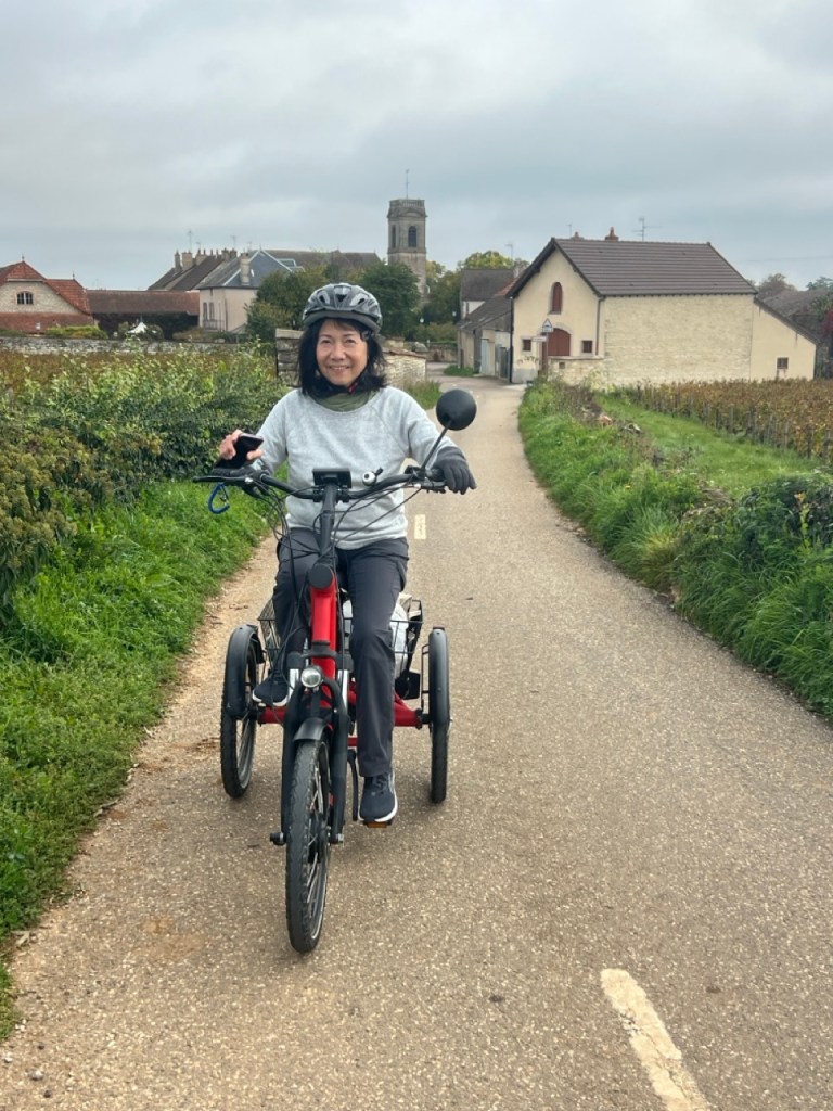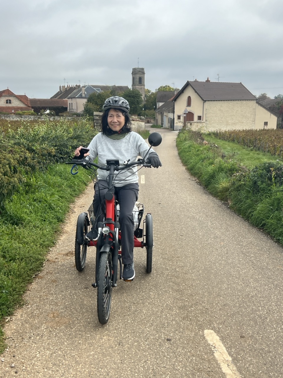 Weather has been cold, cloudy. We rented our bikes from https://www.pombikes.fr/ . The shopkeeper told us that the sun will rise, but it never did during our ride. It was freezing riding our bikes from Pommard to Santenay. The vineyards were beautiful this time of the year, with autumn colors and farmers preparing the land before the winter comes. I opted to ride the tricycle; yes, old woman riding the 3-wheels! It’s not that easy because sharp turns can cause a wheel to be off the ground. And I love electric bike and its power to go up the hills at Santenay.