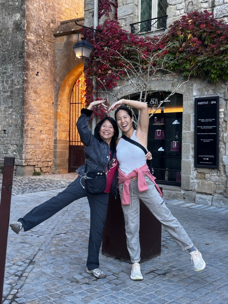 The clothes no longer fit, as a result of eating so much baguette and butter and cheese and dessert. Being with Tina doesn’t help with staying in shape, even though she jogs every other day to keep in shape. Tina eats sweets (ice cream, cookies, chocolates, pastries, and ice cream) every day and several times a day!
