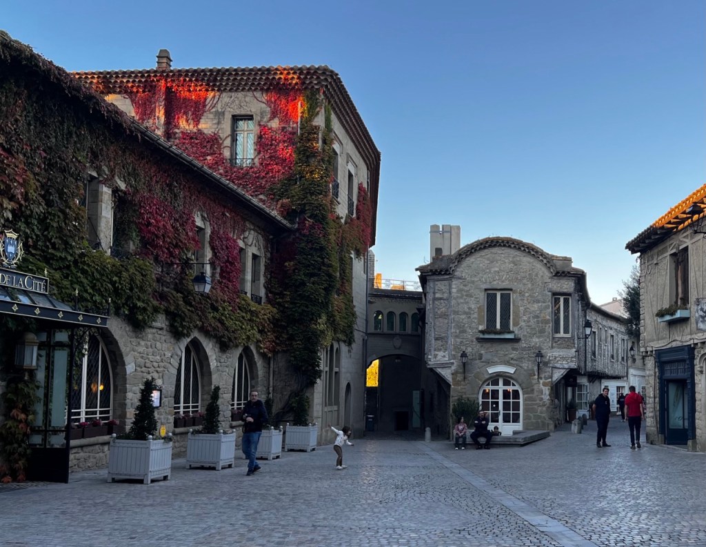 We stayed at La Demeure de la Cité by Jean Bacou, and it was the best deal on this trip so far. Location is right inside the Cité, ground floor, snacks and champagne in the welcome lobby, continental breakfast included. All that for about 65€ a night!