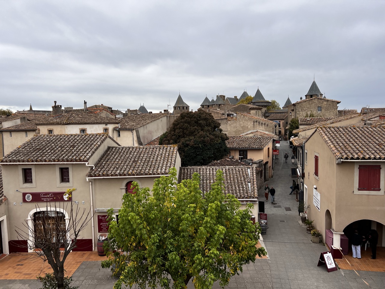 We stayed at La Demeure de la Cité by Jean Bacou, and it was the best deal on this trip so far. Location is right inside the Cité, ground floor, snacks and champagne in the welcome lobby, continental breakfast included. All that for about 65€ a night!