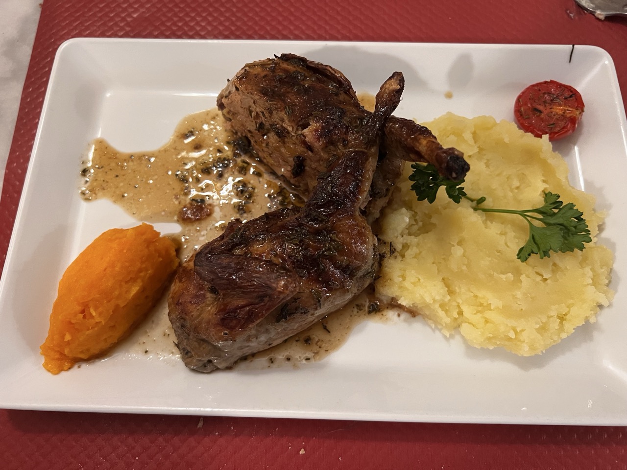 I have to mention the lunch we had in Pézenas. Prices are lower than at big towns. The deboned stuffed quail was super tasty! And I will not mention what Steve ordered :(