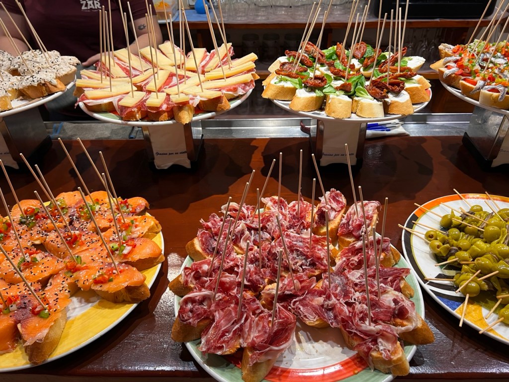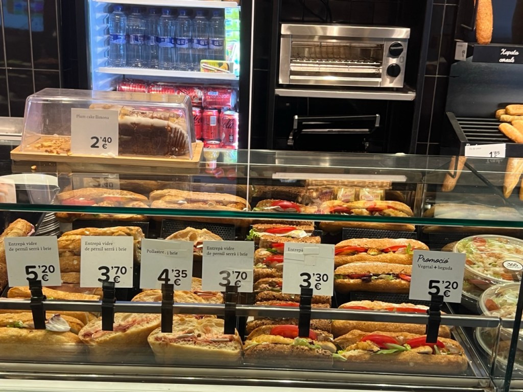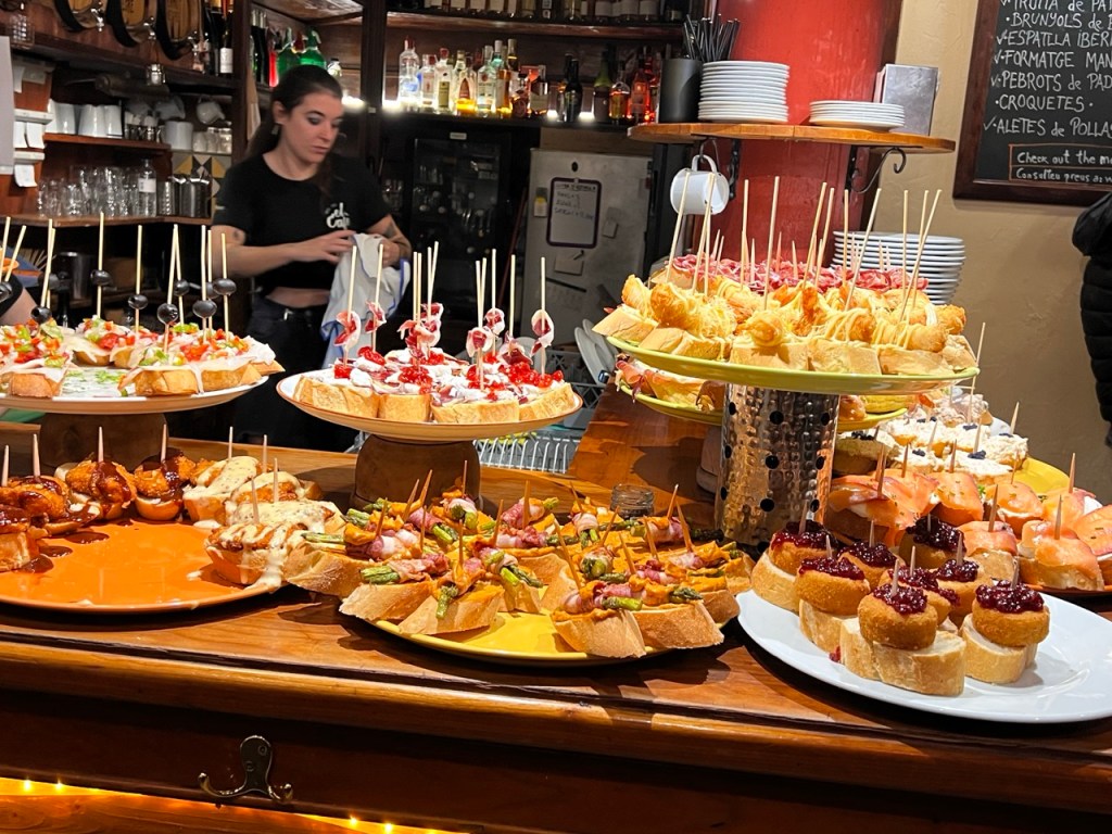 Restaurants and cafes in Girona are at least 1/3 less expensive than in Occitanie. After eating French food for 6 weeks, I welcomed the mediterranean flavors. We had tapas a few nights, hung out at bars for house vermuts every night. For lunch, we frequented 365 Cafes where a chicken and brie sandwich, a large glass of pressed orange juice, a cafe au lait bombom cost us 11 €. Tapas are 2.70€ for long sticks, and 2€ for short sticks. Sangrias are 3.50€ a glass.