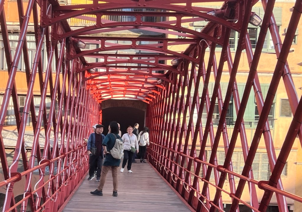 The 1.5 hours train ride to Girona went past Gruissan and Perpignan. I was very surprised when we got to the gare in Girona. It was big, open, and very welcoming. I could feel the Spanish/Catalan warmer personality.