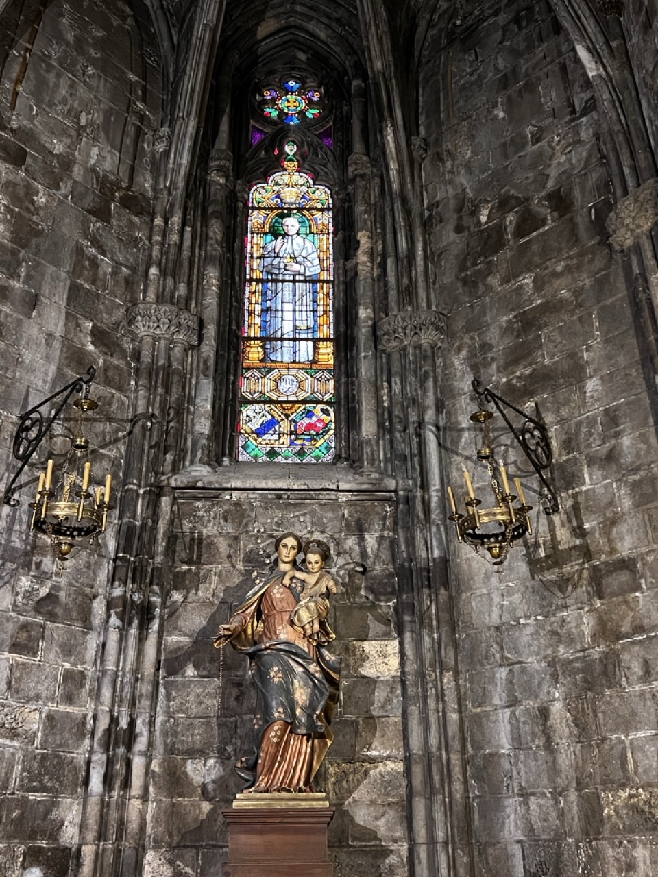 Cathedral de Santa Maria de Girona was built in the 11-12th century and is famous for its widest Gothic nave in the world (75 ft). To visit the cathedral, you need to climb about 100 staircases. How do old folks go to mass, I wonder?