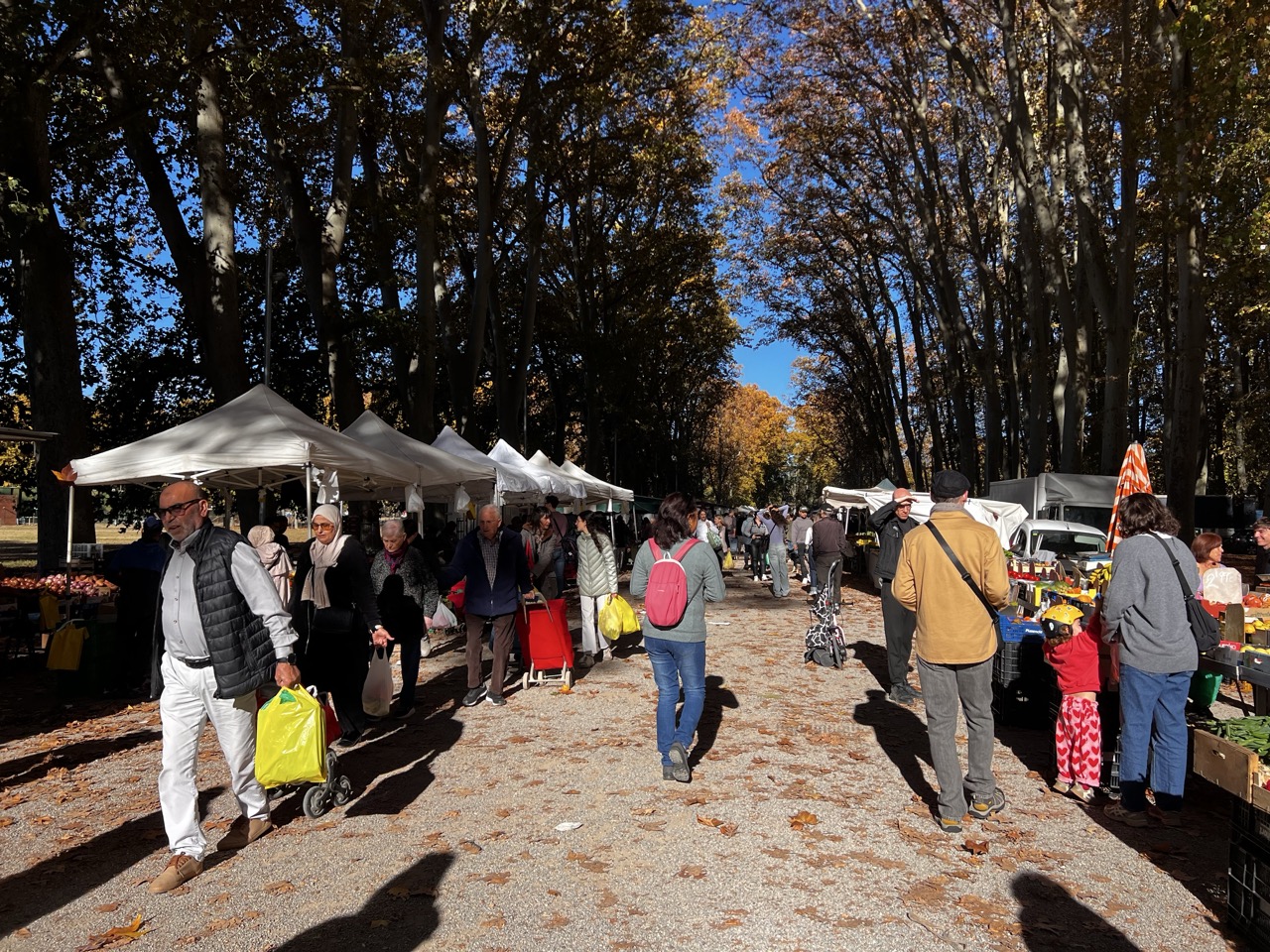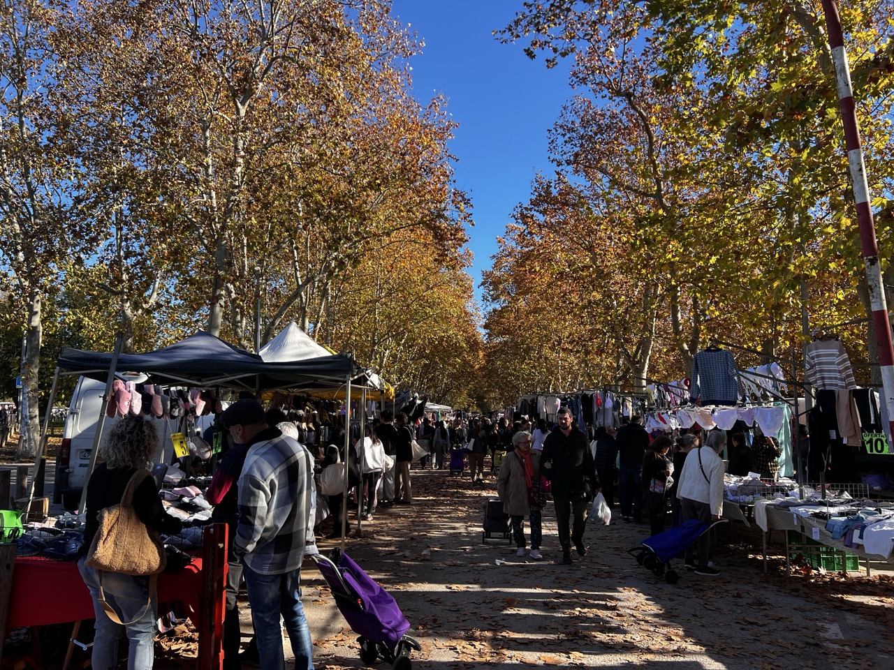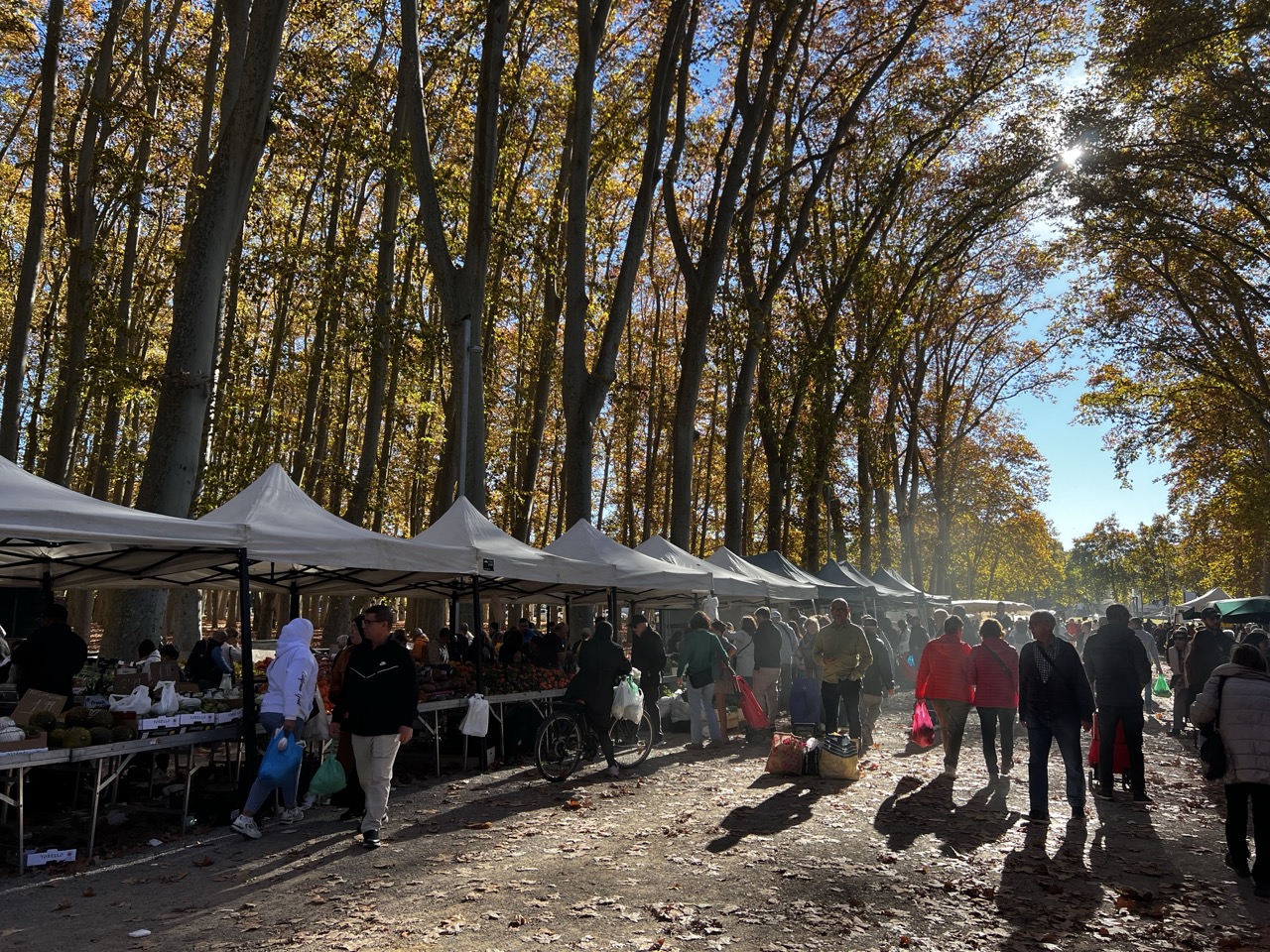 Each Saturday, the Farmers Market is held in the park across the river. It’s even bigger than the market at Arles. It covers from one end of the park to the other. We bought vegetables for tonight’s soup. I notice that soups are not served in restaurants here, unless it’s a big bowl of seafood soup.